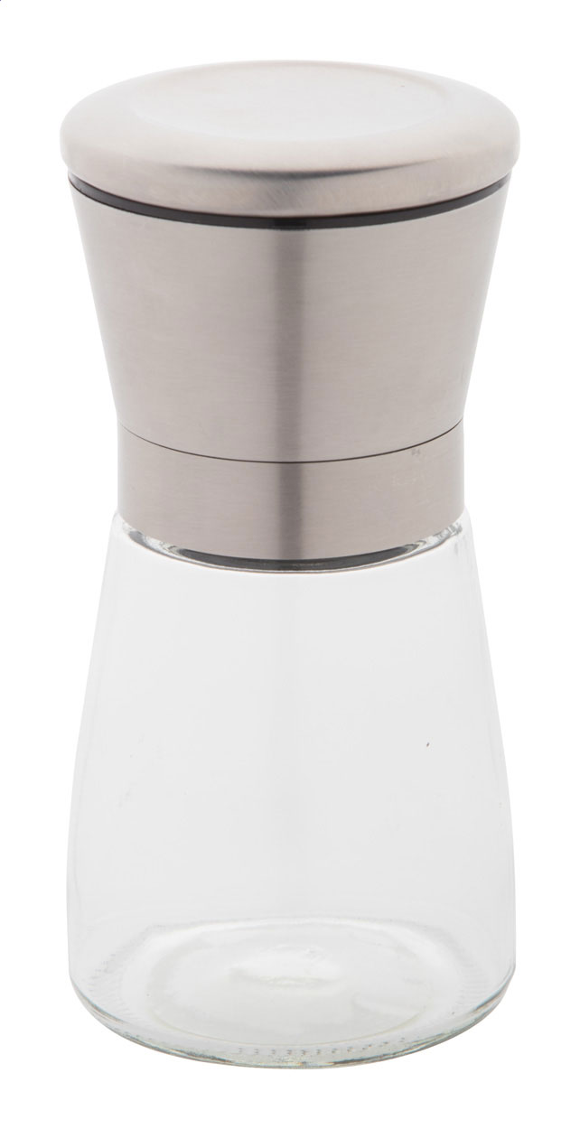 Stainless steel manual salt and pepper mill with ceramic grinder core and glass container, 180 ml.
